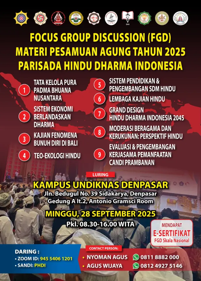 Pesamuhan Agung merupakan forum pengambilan keputusan tertinggi dalam organisasi PHDI, yang menjadi penentu arah strategis dan kebijakan keagamaan bagi umat Hindu di Indonesia. Melalui FGD yang berbobot ini, materi yang akan dibahas dan diputuskan pada PA PHDI 2025 diharapkan telah melalui proses penajaman yang komprehensif, melibatkan perspektif akademisi, tokoh agama, dan representasi umat dari berbagai wilayah di Nusantara. Kegiatan ini merefleksikan upaya berkelanjutan PHDI dalam menempatkan peran Dharma Agama dan Negara dalam kerangka Indonesia yang majemuk.